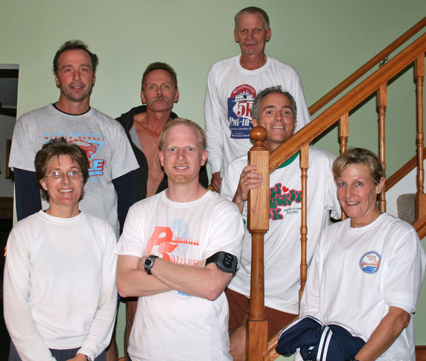 All runners and finishers: Front: Sandy Pease, Kevin Hamen, Mitch Freeman, Cheryl Doyle Back: Richard Morgan, Michael Black, Kevin Foos |